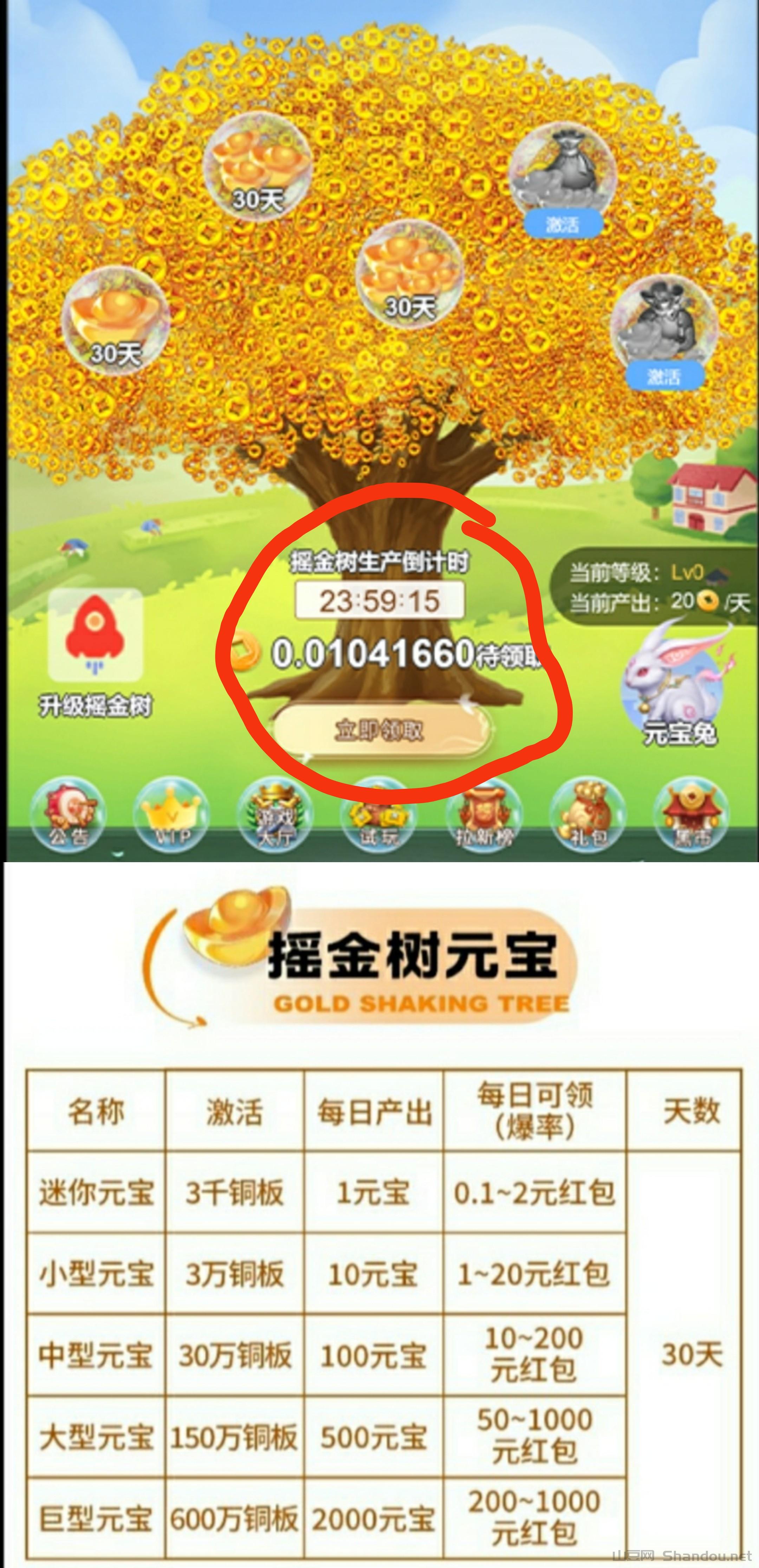 摇金树0撸,玩家简单完成每日任务,领取四元宝,稳赚五+